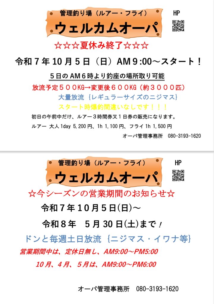 いよいよ明日10/5㈰今シーズンウェルカムオーパ営業再開となります❕
