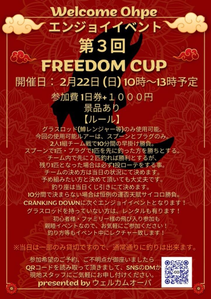 安価フルグラスロッドの無い方用にオーパにてイベント用レンタルロッド準備ございますので必要な方はお声がけください。