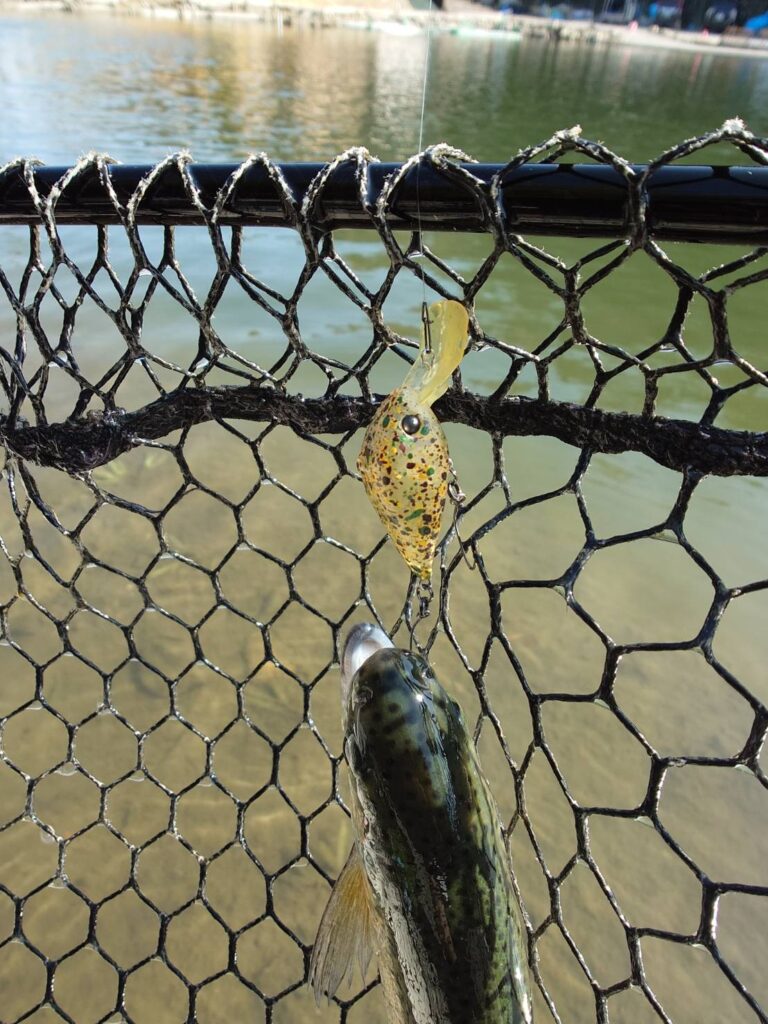 クランクはミート33DR-Fで中層より下まで潜らせてからレンジキープさせて釣りました!